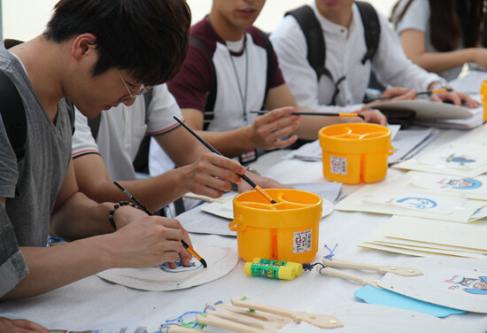 특히 이번 행사를 위해 불교 선화의 대가로 꼽히는 양산 통도사 문수암 수안 스님이 선서화 5점을 기증했다. 150여 명의 학생들이 선서화를 활용해 부채를 꾸미는 시간을 가졌다.