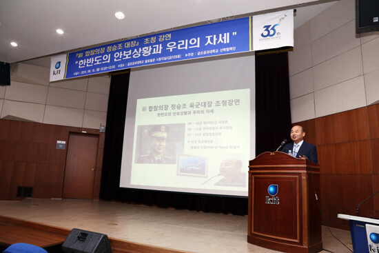 정승조 전 합참의장은 육군 제1사단장과 이라크 평화재건 사단장, 한미연합사 부사령관, 제37대 합동참모의장에 이르는 기간 동안의 경험에 대해 이야기했다. 한반도의 현 안보상황과 그에 대응하는 국민의 자세에 대해 언급했다.
