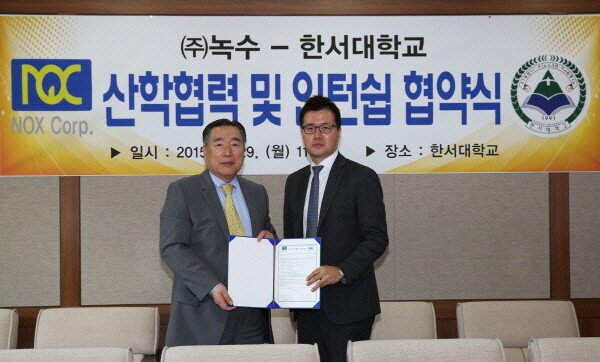 이 협약에 따라 한서대 학생들은 7월 8일부터 12월까지 (주)녹수의 인턴 사원으로 채용된다. 첫 번째로 선발되는 학생들은 화학과 5명, 화공과 1명, 시각디자인학과 2명 등 모두 8명이다. 이들은 인턴 사원으로서 직무를 수행한 이후에 일정한 평가를 거쳐 정규직으로 채용될 예정이다.
