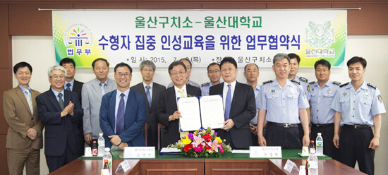 울산대학교(총장 오연천)와 울산구치소가 지난 2일 울산구치소 회의실에서 수형자 집중 인성교육을 위한 업무협약(MOU)을 체결했다.
