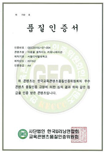 서울디지털대는 이러닝 콘텐츠의 품질이 우수하고, 체계적으로 관리되고 있는 점을 인정받아 경영학과 ‘재무관리의 이해’, 미디어영상학과 ‘영상의 이해’, 교양과정의 ‘마음을 움직이는 커뮤니케이션’ 외 10개 교과 등 총 13개 교과에 대해 품질인증을 받았다.