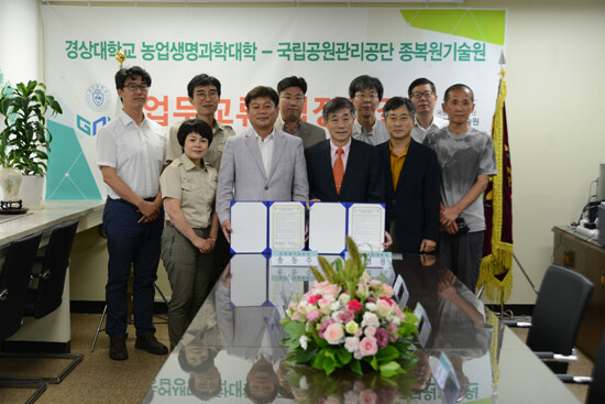 이날 협정 체결식에는 경상대 농업생명과학대학 정병룡 학장, 양재경 교학부학장, 심상인 연구부학장과 종복원기술원 송동주 원장, 박은희 식물복원센터장, 신동진 식물복원팀장 등 10여 명이 참석했다.