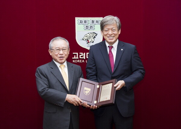 고려대는 27일 고려대 본관에서 김양현 삼원산업 회장과 행정학과 60주년 기금 기부식을 가졌다.