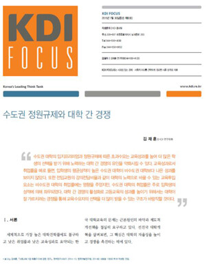 김 연구위원은 대학 경쟁력을 높이기 위한 방안으로 수도권 대학의 총 정원을 유지하거나 축소한 상태에서 수도권 대학끼리의 정원 자율화를 제안했다. 수도권에선 수도권 대학끼리, 지방에선 지방대끼리 경쟁을 하라는 것이다.