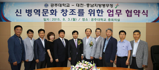 공주대학교는 3일 대전·충남지방병무청과 상생발전을 위한‘신 병역문화 창조를 위한 업무 협약’을 체결했다.