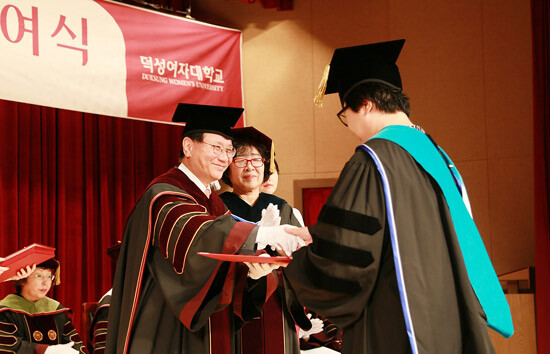 이원복 총장은 “우리 졸업생 모두에게 이 학위가 더욱 풍성한 수확을 위한 시작이 되기를 기원한다”며 “앞으로 덕성인다운 자기주도적 삶을 살고 어떠한 역경에도 절대 포기하지 말기를 바란다. 또 타인을 배려하고 포용하는 사람이 되라”고 당부했다.