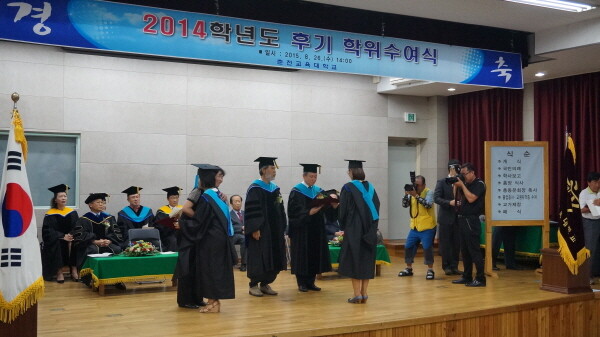 춘천교육대학교(총장 이면우)가 26일 춘천교대 홍익관 일지홀에서 '2014학년도 후기 학위수여식'을 개최했다.