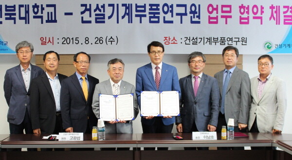 전북대학교(총장 이남호)가 산업통상자원부 산하 연구기관인 건설기계부품연구원(원장 고광섭)과 공동 연구와 우수 인력양성을 위해 협약을 맺었다.