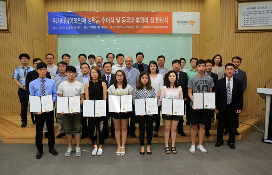 장학기금 조성을 주도한 배관태 위시티바이오상인회 대표는 "동국대 고양캠퍼스가 들어서면서 지역상권이 활성화 되는 등 많은 도움을 받았다. 직접 혜택을 받은 것은 아니지만, 학생들을 돕는다는 좋은 취지에 동참해 주시는 분들도 점점 늘고 있다"며 "아직은 금액이 많지 않으나, 더 많은 학생들에게 더 큰 도움을 줄 수 있도록 꾸준히 노력하겠다"고 말했다.