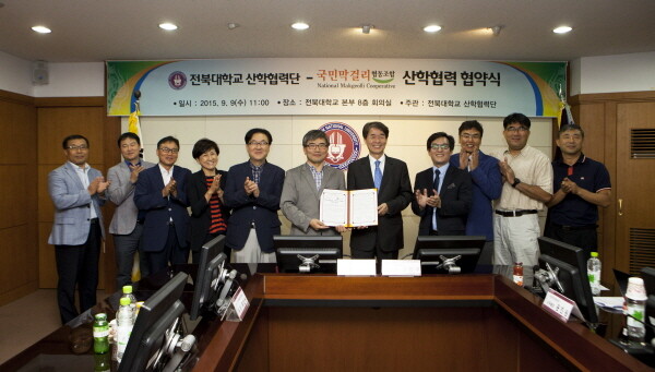 양 기관은 9일 전북대에서 곽용근 전북대 산학협력단장과 강환구 국민막걸리협동조합 이사장 등 양 기관 주요 관계자들이 참석한 가운데 공동 연구 추진 및 산학협력을 위한 협약을 맺었다.
