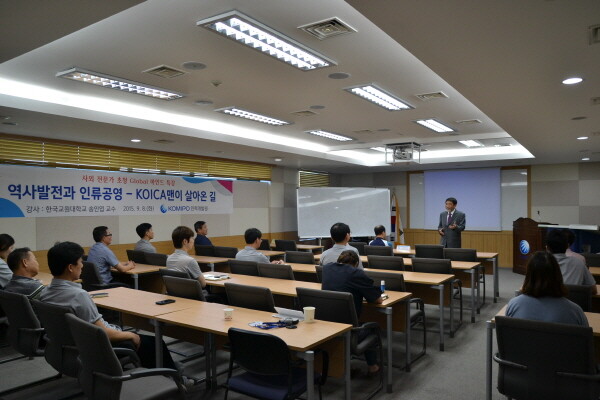 한국중부발전 인력개발원(원장 이인공)이 10일 ‘역사발전과 인류공영, ‘우리의 일터는 5대양 6대주다’와 ‘시(詩)로 노래하는 세계여행’의 작가 송인엽 한국교원대 교수를 초청해 특강을 진행했다. 특강의 주제는 ‘역사발전과 인류공영-KOICA인이 살아온 길’이었다.