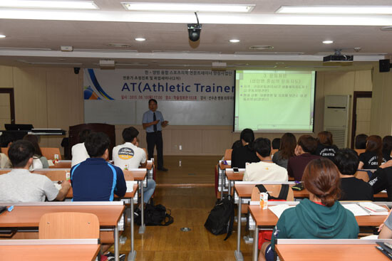 사업단은 지난 10일 학술정보관에서 서울 잠실 선수촌 병원 의무지원팀 김한수 팀장의 'AT(Athletic Trainer:선수트레이너)란?' 주제로 전문가 초청진로 및 취업 세미나를 가졌다.