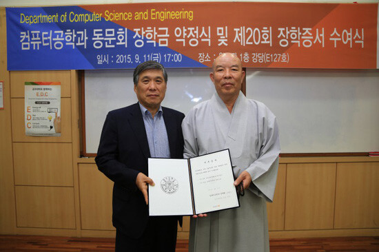 한편 발전기금 전달식에 이어 장학금 전달식이 진행됐다. 동국대 컴퓨터공학과 장학회는 강용화(컴퓨터공학과 2학년) 씨 등 재학생 3명에게 1인당 150만 원씩 총 450만 원의 장학금이 전달됐다.