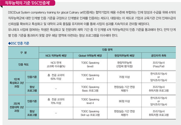 대림대가 도입한 DSC인증제가 정착되면 대림대는 호텔조리과뿐만 아니라 유니테크 이외 학과와 기업의 협약 시 성공모델로 제시할 예정이다. 유니테크 사업의 성공효과가 대림대 전체로 확산되는 셈이다.