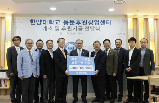 한양대학교(총장 이영무)는 동문과 대학이 유망 스타트업을 발굴 및 지원해 글로벌 강소기업으로 키우는 '동문후원창업센터'를 국내 대학 최초로 개소했다.