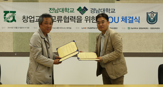경남대학교(총장 박재규) LINC사업단 창업교육센터와 전남대학교(총장 지병문) LINC사업단 창업교육센터는 지난 21일 전남대에서 창업교육 활성화에 대한 업무협약을 체결했다.