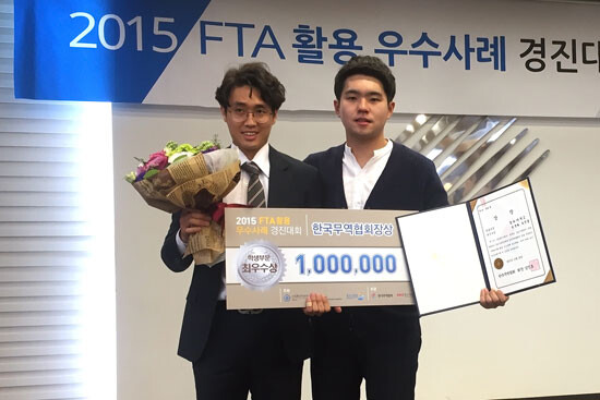 학생부문 경쟁에서 청주대 GTEP사업단 영어영문학과 장경록(4학년) 씨와 무역학과 국민성(4학년) 씨가 ‘미국정부를 고객으로’라는 주제로 최우수상을 수상했다. 이번 수상 주제는 FTA를 활용한 미국정부 조달시장에 진출하기 위한 구체적인 전략과 비즈니스모델을 제시함으로써 기존의 FTA활용사례와는 차별화된 특색을 가진 점에서 좋은 평가를 받은 것으로 알려졌다.