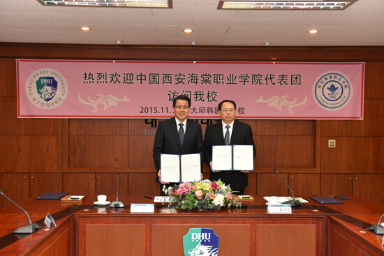 대구한의대학교(총장 변창훈)는 10일 대구한의대 대학본부 대회의실에서 학생 교류 및 공동연구를 위해 중국 서안해당직업학원(총장 풍거진)과 교류 협약을 체결했다.