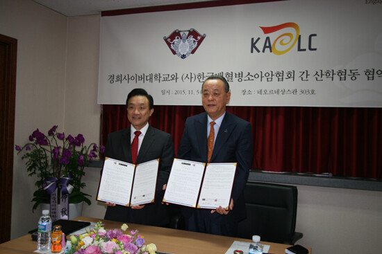 경희사이버대는 지난 5일 경희대 서울캠퍼스 네오르네상스관 303호에서 (사)한국백혈병소아암협회와 산학협동 협약을 맺었다.