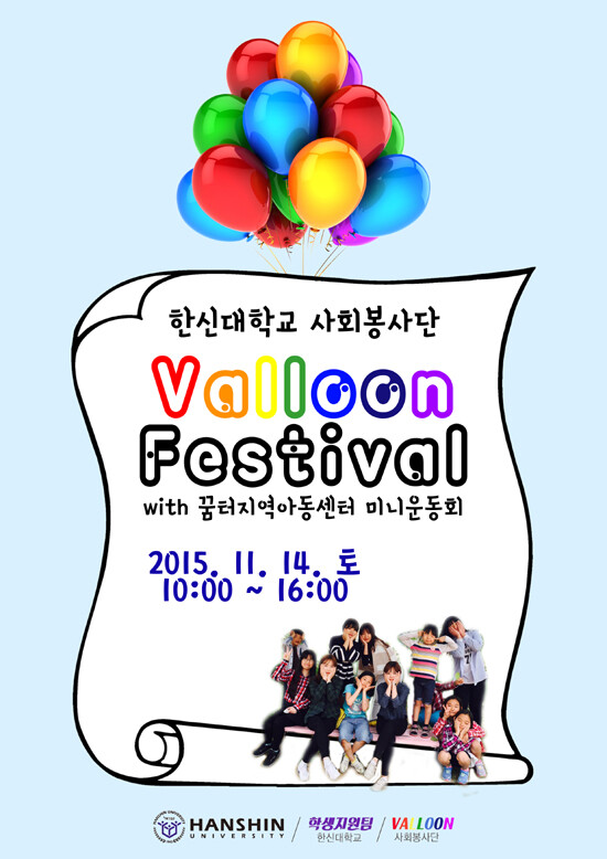 한신대 사회봉사단 'Vallon(발룬)'은 오는 14일 한신대 한울관에서 '발룬 페스티벌'을 개최한다.