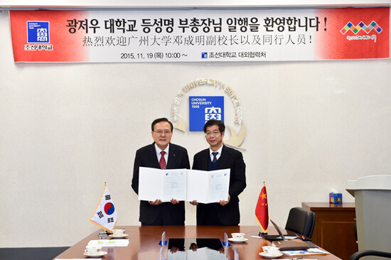 조선대학교(총장 서재홍)가 19일 조선대 본관 2층 소회의실에서 중국 광저우대와 교류 협약을 체결하고 본격적인 교류에 나선다.