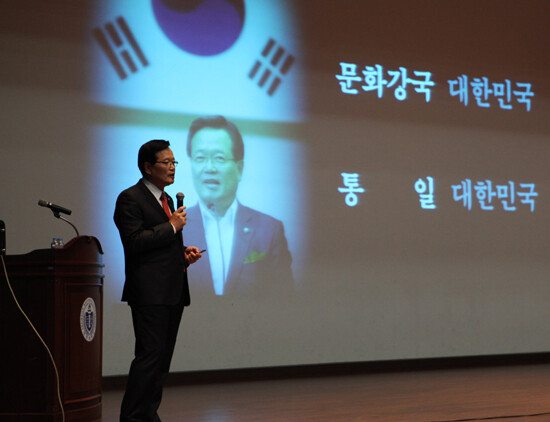 정 의장은 특강에서 "대한민국이 나아가야 할 길은 '문화강국과 통일'"이라면서 "통일은 대결이 아니라 신뢰하고 화합할 때 가능하다"고 밝혔다.