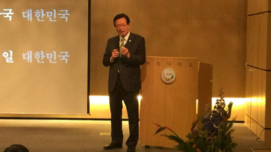 국민대학교(총장 유지수)는 19일, 정의화 제19대 국회 후반기 국회의장을 ‘제 454회 목요특강’ 연사로 초청해 특강을 열었다.국민대 학생 250여 명이 참석한 가운데 ‘청년의 꿈이 나라의 미래를 바꾼다’라는 주제로 강연 및 자유로운 토론이 이어졌다.정 국회의장은 강연을 통해 청년들의 열정과 의지를 강조하며, 이를 위해 결과보다 과정을 중시하는 사회로의 변화를 촉구했다.