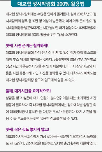 ※대학 합격을 위한 최고의 파트너, <대학저널>은 매년 대교협 정시박람회장 출구에서 ‘전국 주요대학 정시입학정보책자’를 배포하고 있습니다. 올해도 수험생과 학부모님들의 많은 관심을 바랍니다.