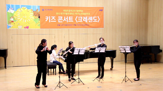 대구가톨릭대 피아노과·관현악과는 27일 대구가톨릭대 효음아트홀에서 키즈 콘서트 '크레셴도'를 개최했다. 하양초 4~6학년 약 300명을 초청해 익숙한 곡을 들려줬다. 퀴즈타임과 체험무대도 가졌. 반짝이는 아이디어와 차별화된 스토리텔링으로 기존의 공연과는 다른 묘미를 느낄 수 있었다.