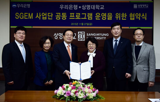 상명대학교(총장 구기헌)는 지난 27일 상명대 서울캠퍼스 중회의실에서 우리은행(은행장 이광구)과 신흥시장 수출마케터 육성을 위해 상호협력협약을 체결했다.