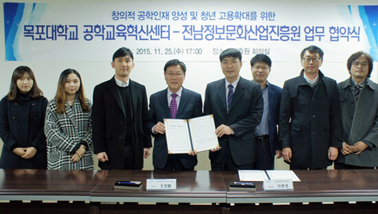 목포대학교(총장 최일) 공학교육혁신센터가 지난 11월 25일 (재)전남정보문화산업진흥원(원장 오창렬)과 진흥원 회의실에서 전라남도 정보문화 산업 육성을 위한 업무협약을 체결했다.