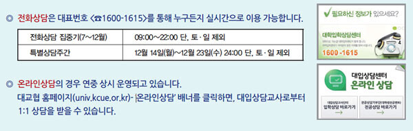 또한 진학경험이 풍부한 대교협 대입상담교사단, 상담전문위원이 전년도 합불사례를 활용한 대입상담프로그램으로 진학상담을 하고 있으니 이를 적극 활용할 필요가 있다.