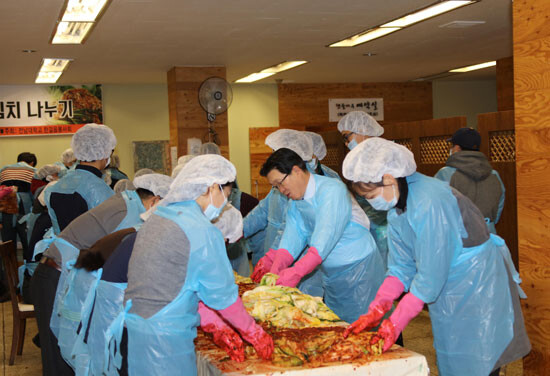 전남대 교직원 봉사동아리인 한걸음봉사회는 지난 11일 '2015 사랑의 김장김치 나누기' 행사를 펼쳤다. 이날 행사에는 지병문 총장을 비롯한 교직원, 학생 등 60여 명이 참여해 총 400여 포기의 김치를 담갔다.