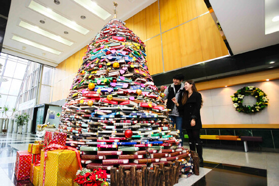 대구대학교(총장 홍덕률)가 중앙도서관에 학생들의 새해 소망을 담은 책트리(Book Tree)를 설치해 눈길을 끌고 있다.
