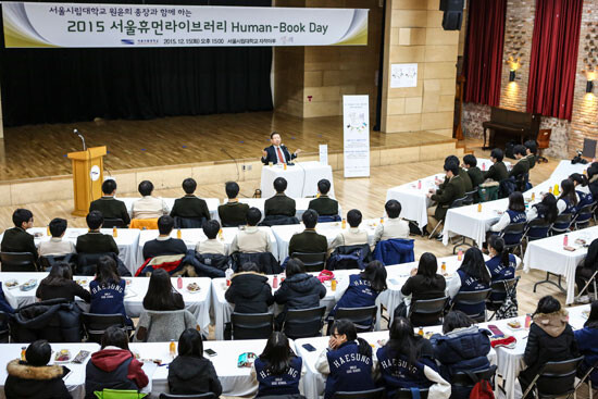 이날 행사에는 서울시립대 주변 고교 재학생 80명이 참여해 원 총장을 휴먼북으로 열람했다. 열람 주제는 ‘청소년의 꿈’. 원 총장은 꿈, 공부 방법, 삶의 철학 등 자신의 학창시절을 들려주고, 참가한 학생들과 진학, 진로, 친구, 가치관 등에 대한 이야기를 나눴다.