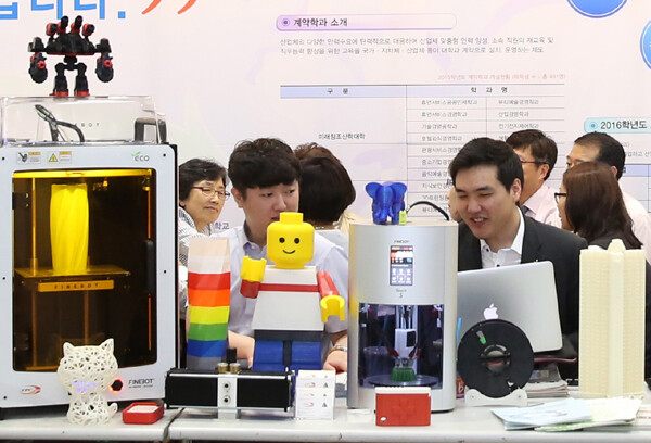 상명대 창업지원단은 단순히 3D프린팅 테크샵 구축에만 집중하지 않고 3D프린팅 분야 선도를 위해 지난 11월 20일 상명대 미래백년관에 ‘3D프린팅융합센터’를 개소했다. 3D프린팅융합센터의 첫 사업으로 11월과 12월에 걸쳐 3개의 3D프린팅 전문 실습교육(기초교육, 심화융합교육, 교원 대상 기초속성교육)이 진행된다.