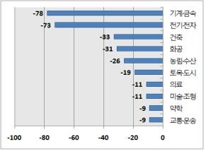 | 전기·전자 | 60 | 88 | -28 | 35 | 40 | -5 | 31 | 48 | -16 |