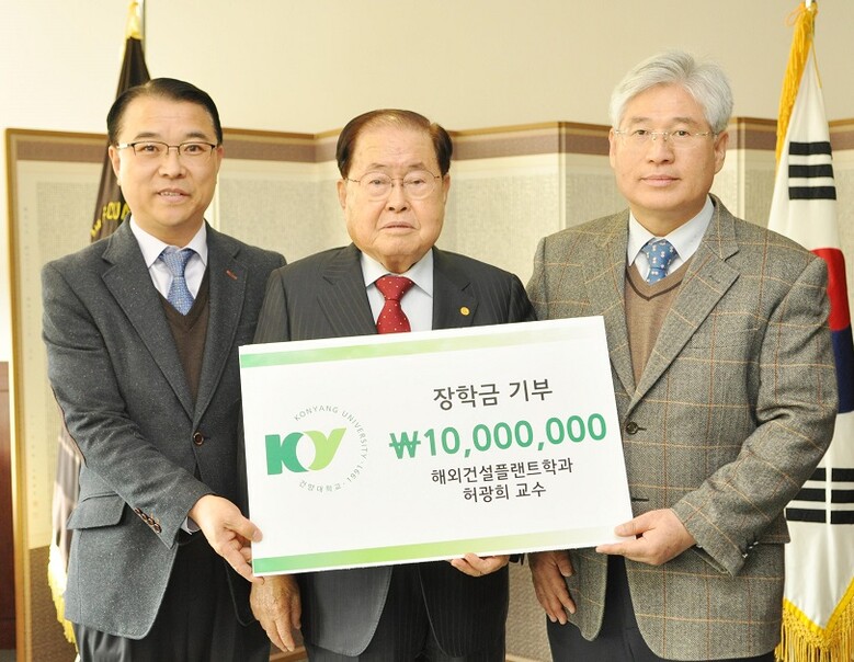 건양대학교(총장 김희수) 해외건설플랜트학과 허광희 교수가 제자들을 위해 장학금을 기부했다.