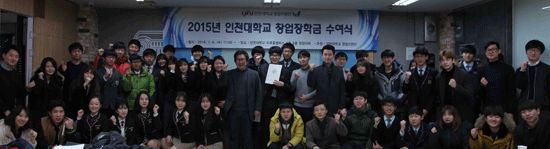 인천대학교(총장 최성을) 창업지원단이 6일 인천대 송도미추홀캠퍼스에서 '2015년도 창업장학금 수여식'을 개최했다.