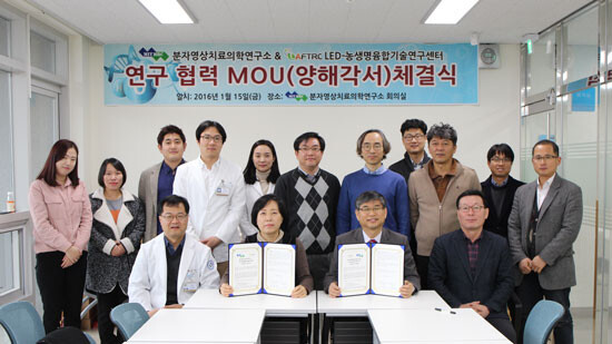 전북대학교(총장 이남호)의 LED 농생명융합연구센터와 분자영상치료의학연구소가 지난 15일 공동 연구를 진행하기로 합의했다.