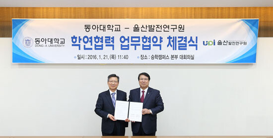 동아대학교(총장 권오창)가 21일 동아대 승학캠퍼스 인문과학대학 대회의실에서 울산발전연구원과 업무협약을 체결했다.