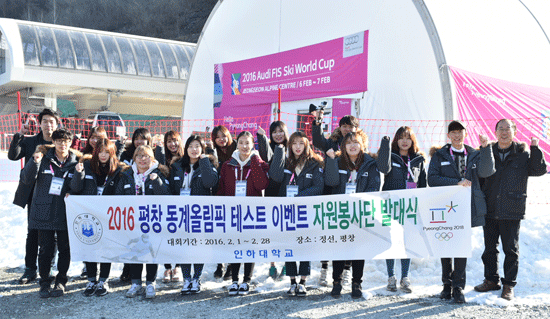 인하대는 지난 1일 정선군 종합사회복지관에서 개최된 '2016 아우디 국제스키연맹(FIS) 스키 월드컵 대회 자원봉사 발대식'에 참여했다. 이번 발대식에서 인하대 재학생 50명이 자원봉사자로 나섰다.