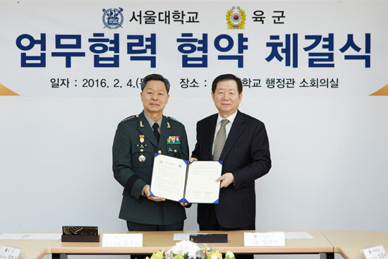 서울대학교(총장 성낙인)와 육군(참모총장 장준규)이 학생 및 군 장병의 자질 향상 및 인성함양 교육을 위한 분야에서 상호 협력을 강화하기로 했다.