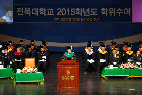 전북대학교(총장 이남호) 2015학년도 전기 학위수여식이 22일 삼성문화회관에서 거행됐다.