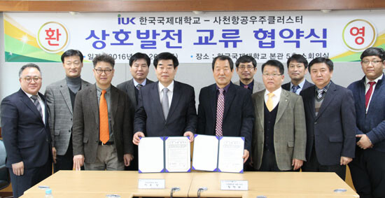 한국국제대학교(총장 이우상)가 지난 26일 사천항공우주클러스터와 상호발전 교류 협약식을 체결했다.