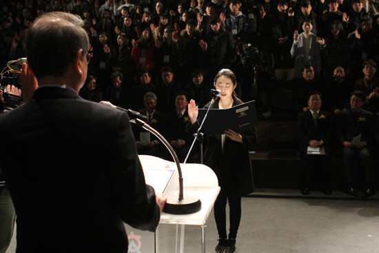 한국영상대학교(총장 유재원)가 16학번 신입생들이 '프로 선서'를 하며 앞으로의 대학생활의 다짐을 상기했다.