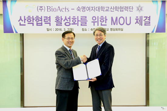 이에 숙명여대 산학협력단(단장 천충일)은 연구용 바이오 소재 개발·생산기업인 (주)BioActs(대표 나종주·이하 바이오액츠)와 산학협력 활성화를 위한 협약을 체결했다.