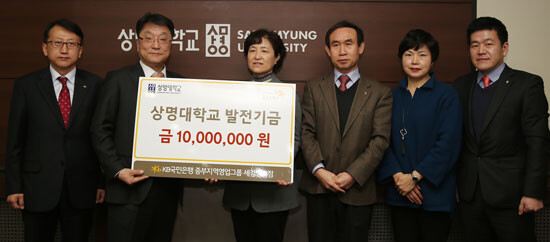 이승재 국민은행 중부지역영업그룹대표가 양세정 상명대 대외교류본부장에게 발전기금 1000만 원을 전달했다.