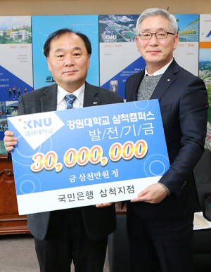 국민은행 삼척지점은 지난 16일 강원대 삼척캠퍼스를 방문해 대학사랑 발전기금 3000만 원을 기탁했다.