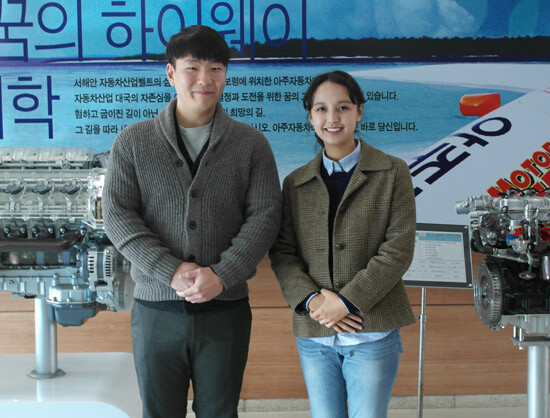 지난 10여 년간 자동차를 중심으로 특성화를 추진해 온 아주자동차대학은 높은 교육성과와 교육의 질, 취업률을 토대로 대다수 정부 재정 지원 사업에 선정되며 그 이름을 널리 알리고 있다. 문상선(자동차제어및진단기술전공 2학년), 정연지(자동차디자인전공 2학년) 씨에게서 아주자동차대학만의 특별한 점을 들어봤다.